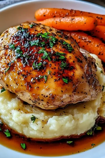 Irresistibly Juicy Garlic Herb Chicken with Mashed Potatoes and Glazed Carrots