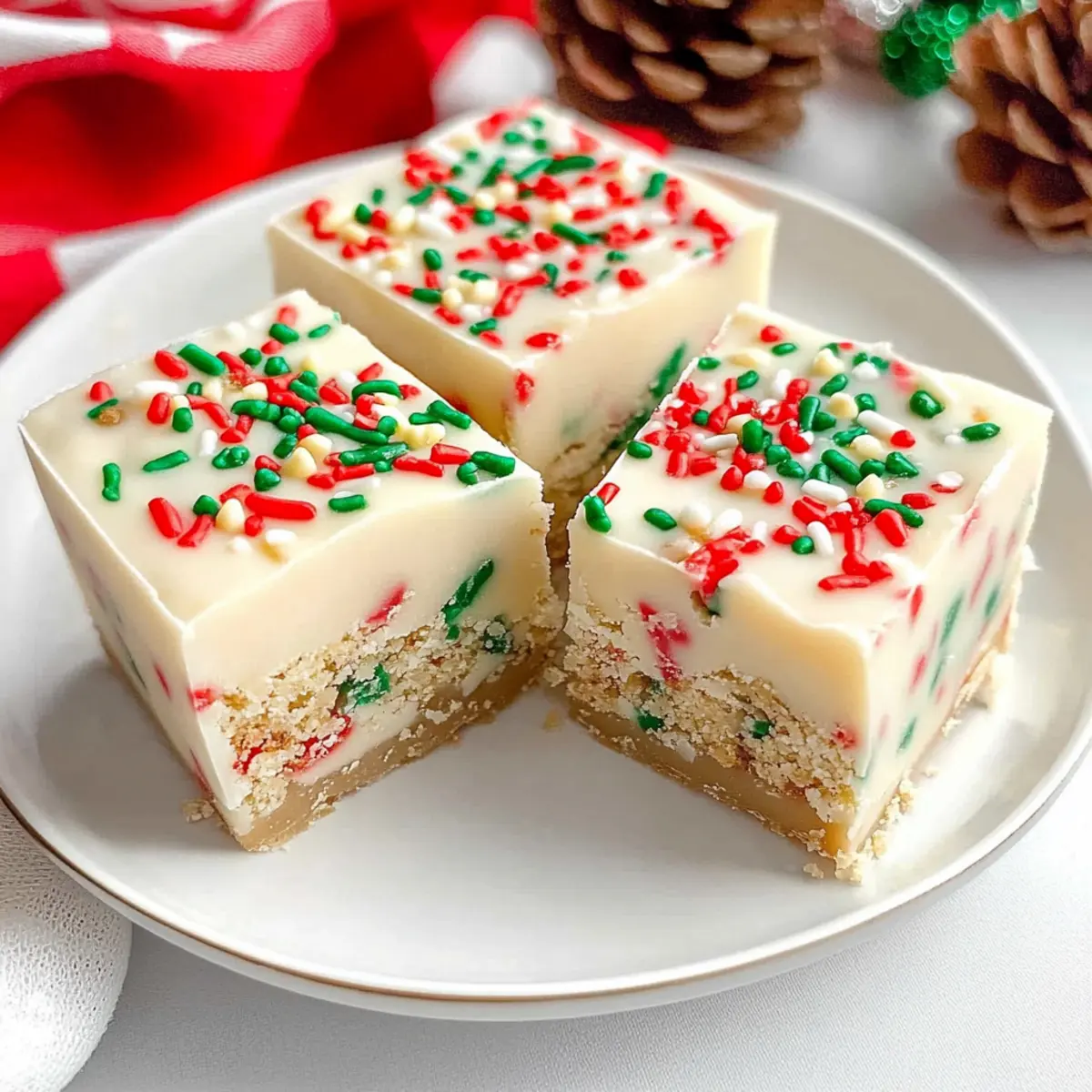 Press Sprinkles Firmly: After pouring the fudge, lightly press the Christmas jimmies into the top. This keeps them from falling off and ensures a festive look when served.