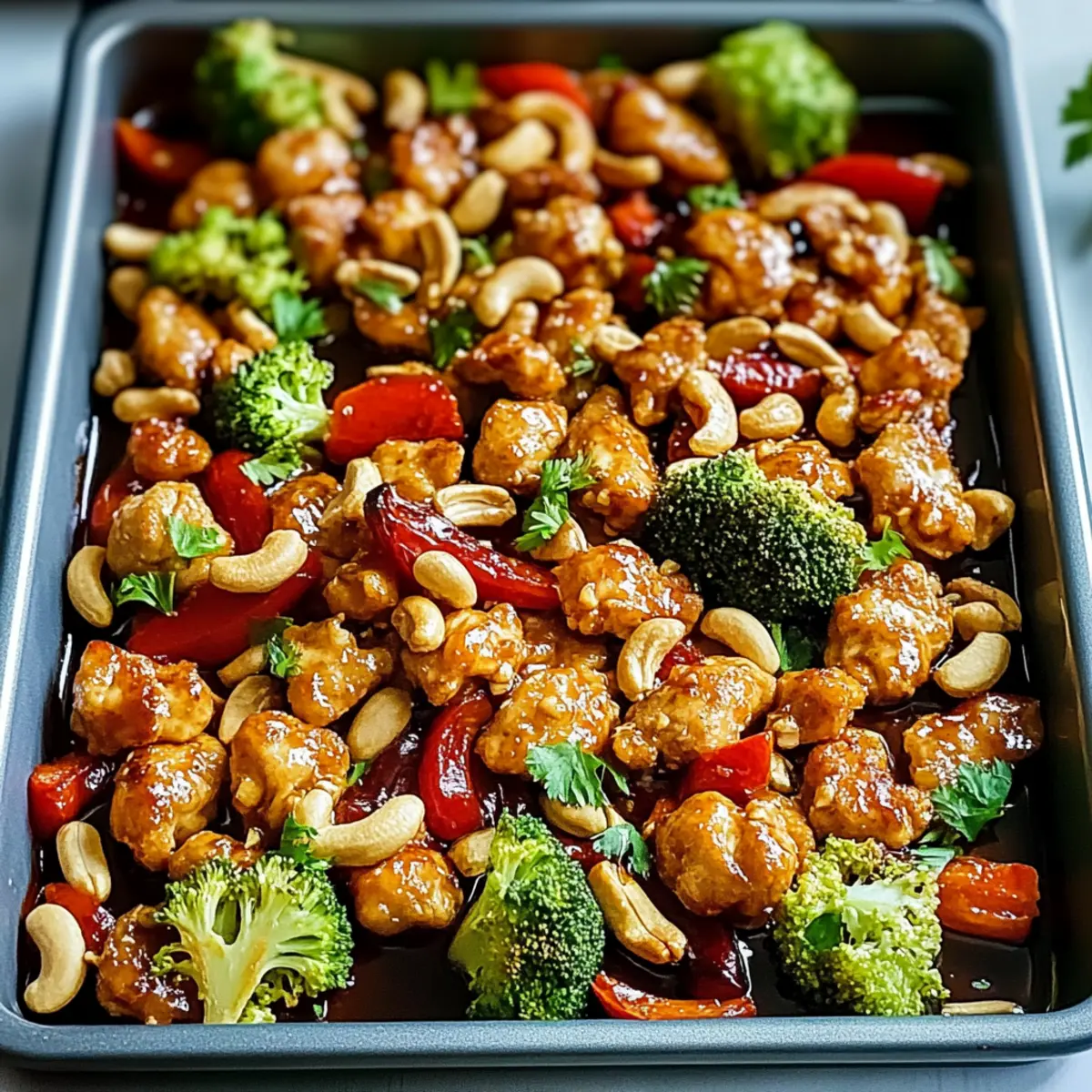 Easy Crispy Cashew Chicken Made on One Sheet Pan Delight