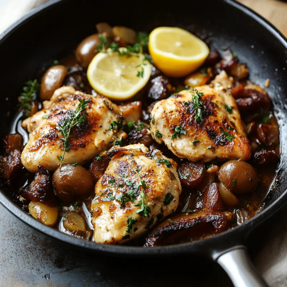 Dessert Option: End the meal with a light lemon sorbet, mirroring the vibrant citrus notes in the skillet and cleansing the palate.