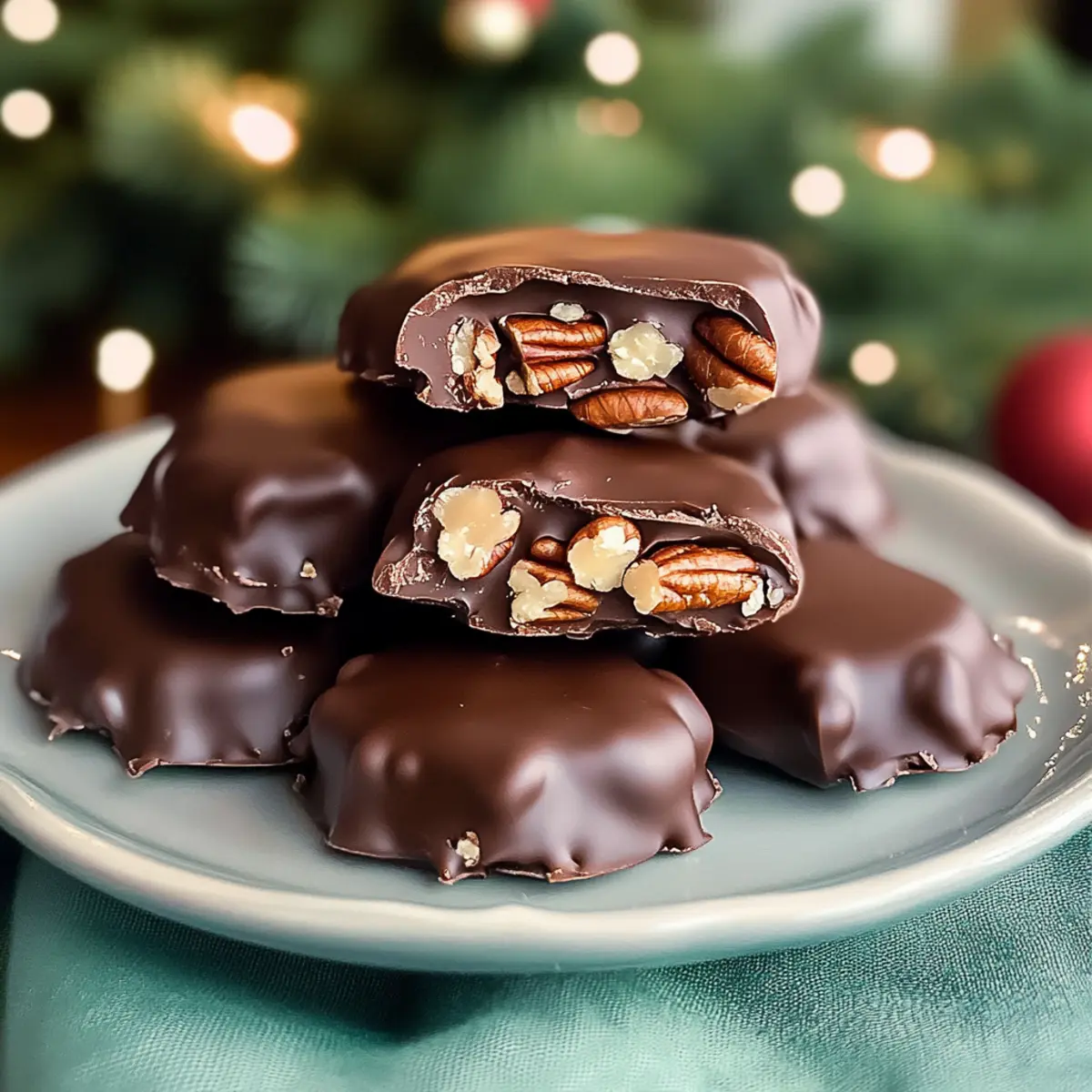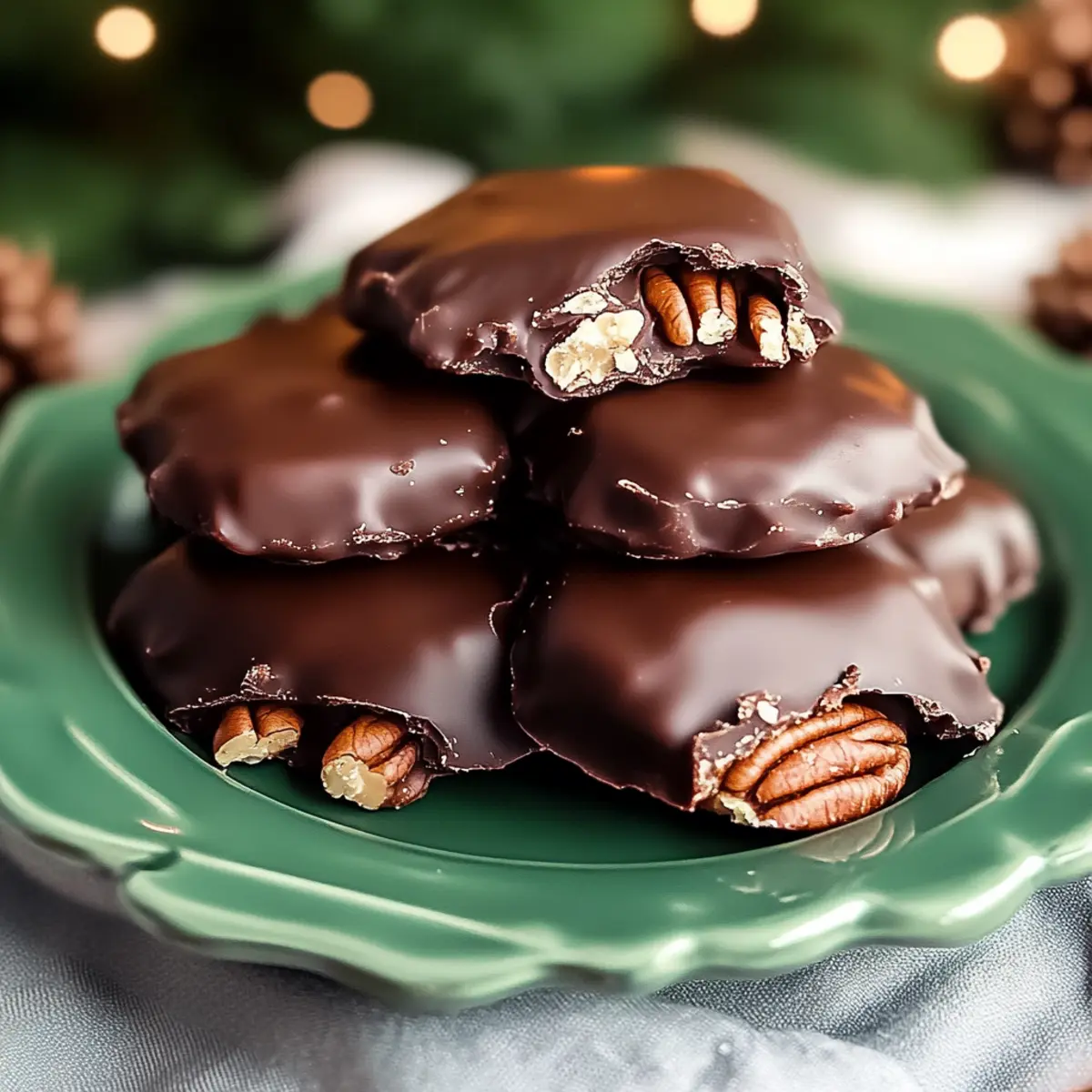 Scoop portions of the pecan mixture once firm, dip each piece in the melted chocolate, and place them on wax paper to cool and set beautifully.