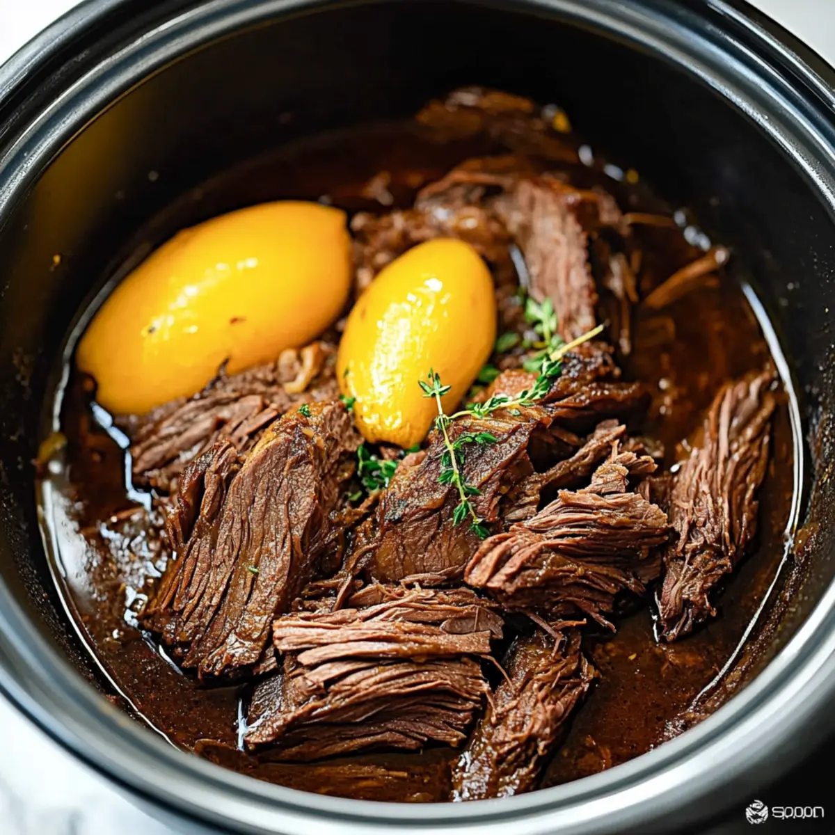 - Return the shredded beef to the slow cooker and mix it into the flavorful juices.