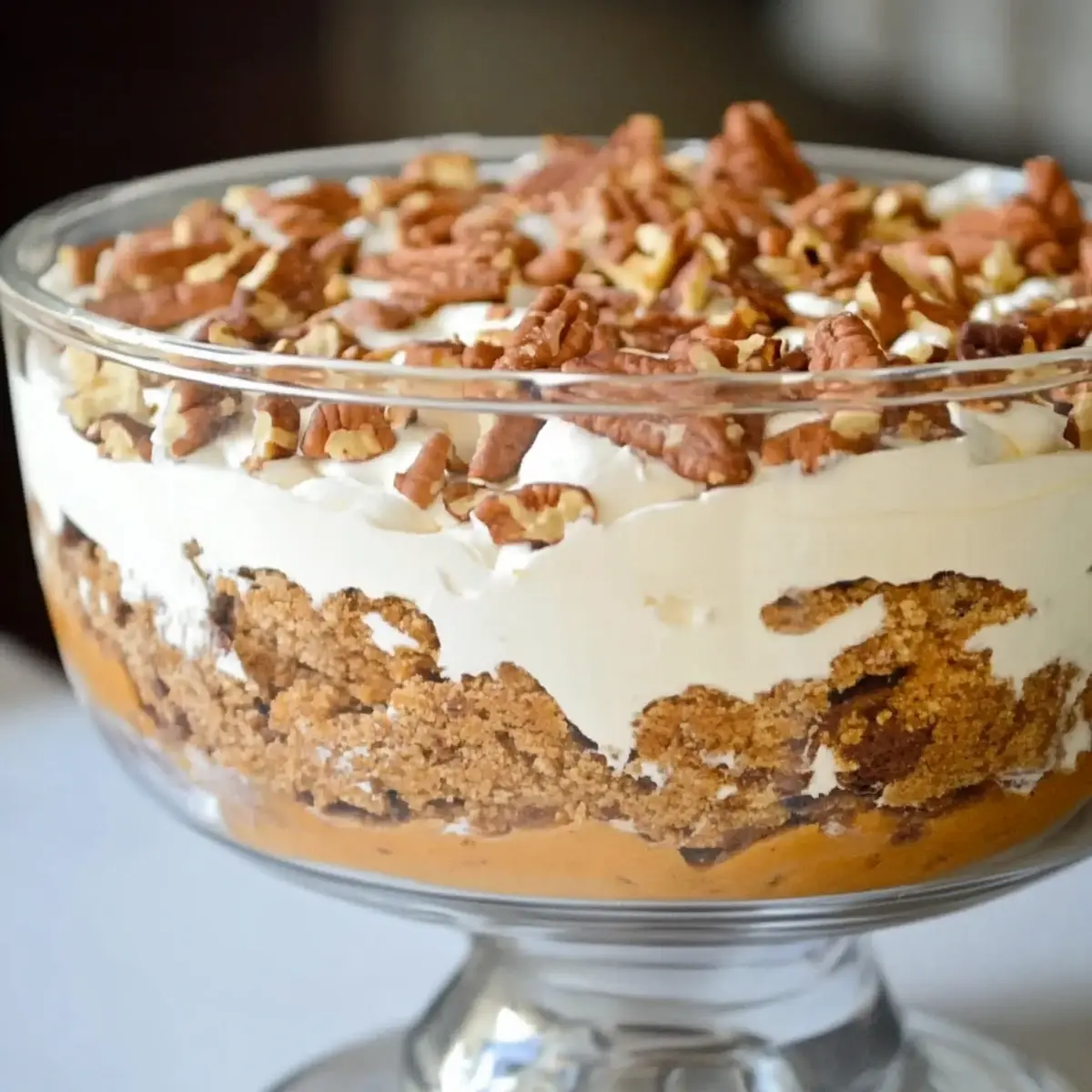 Irresistible flavor: This trifle combines creamy vanilla pudding with moist pumpkin cake, creating a dreamy dessert that captures the essence of fall.