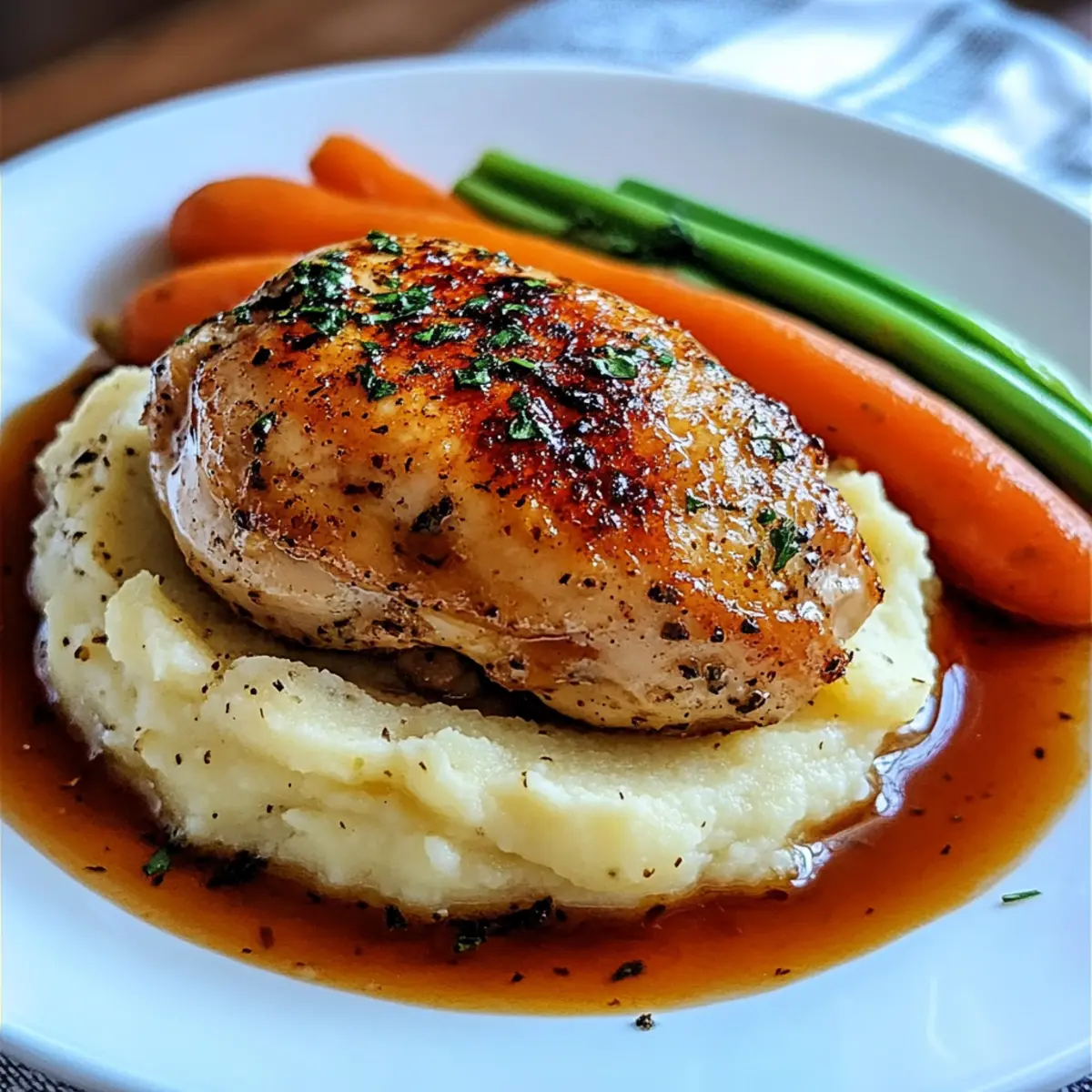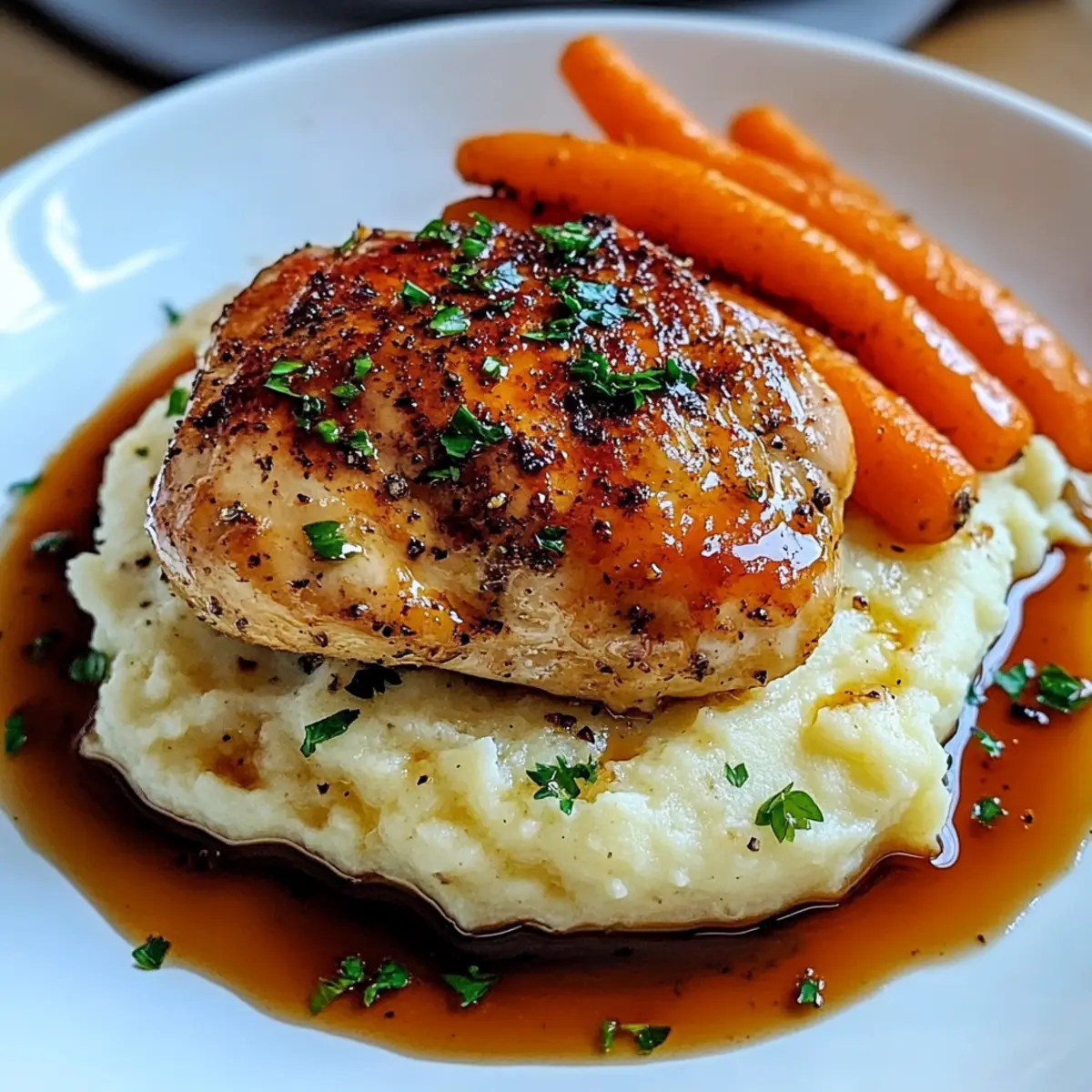 Irresistibly Juicy Garlic Herb Chicken with Mashed Potatoes and Glazed Carrots
