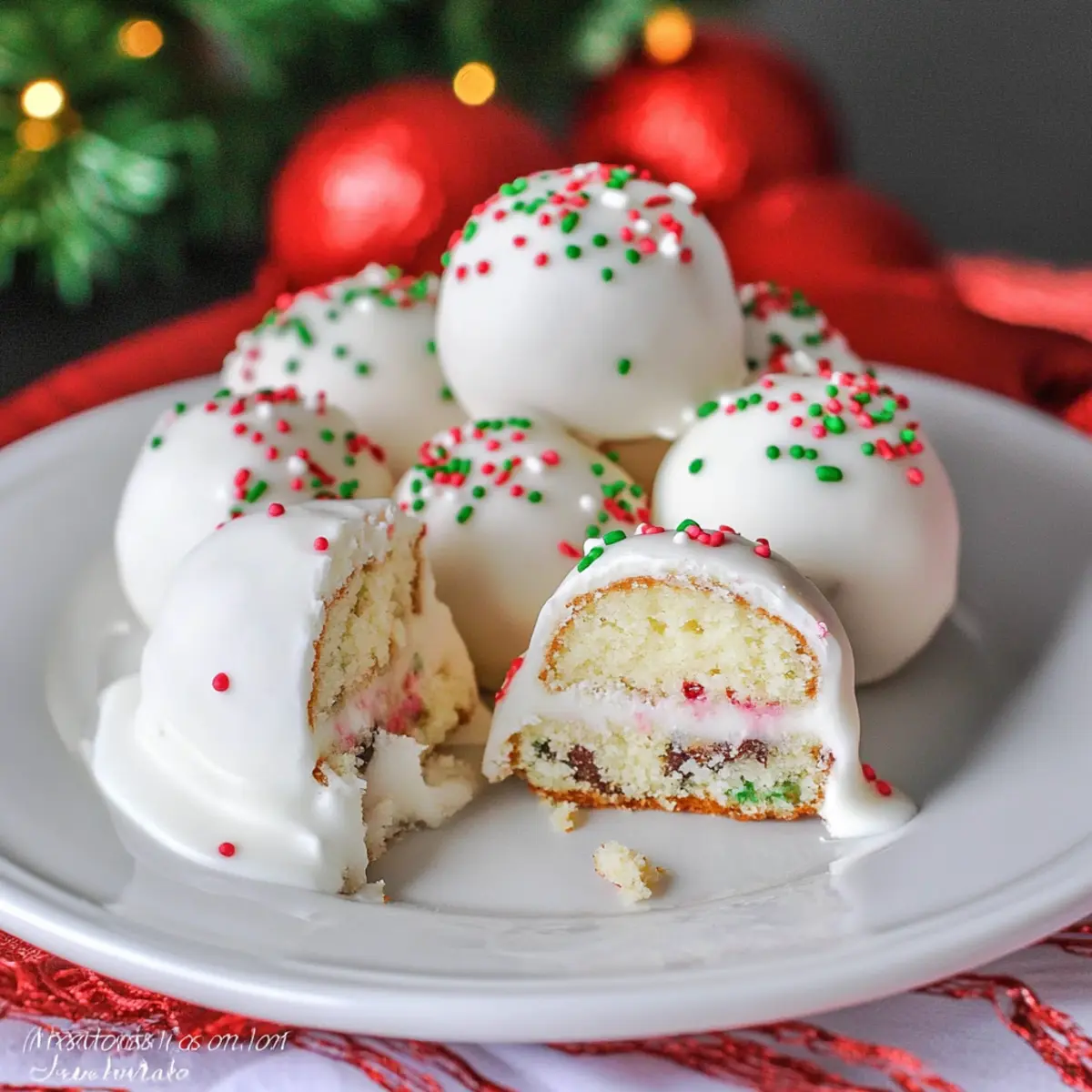 Whether you're looking to impress your family at Christmas dinner or need a quick treat for a potluck, I promise these cake balls will become your new go-to. Every bite is a burst of nostalgia wrapped in a gorgeous, sweet coating decorated with festive colors. So gather your ingredients and let's create a holiday treat that's not just about flavor, but also about making delightful memories!