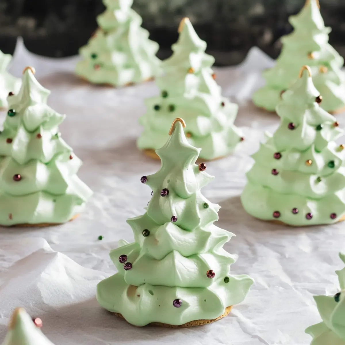 Spiced Gingerbread Cookies: The bold flavors of gingerbread bring a festive spice to your dessert table, contrasting beautifully with the lightness of the meringue. Their soft yet chewy texture complements the crisp, melt-in-your-mouth quality of the trees.