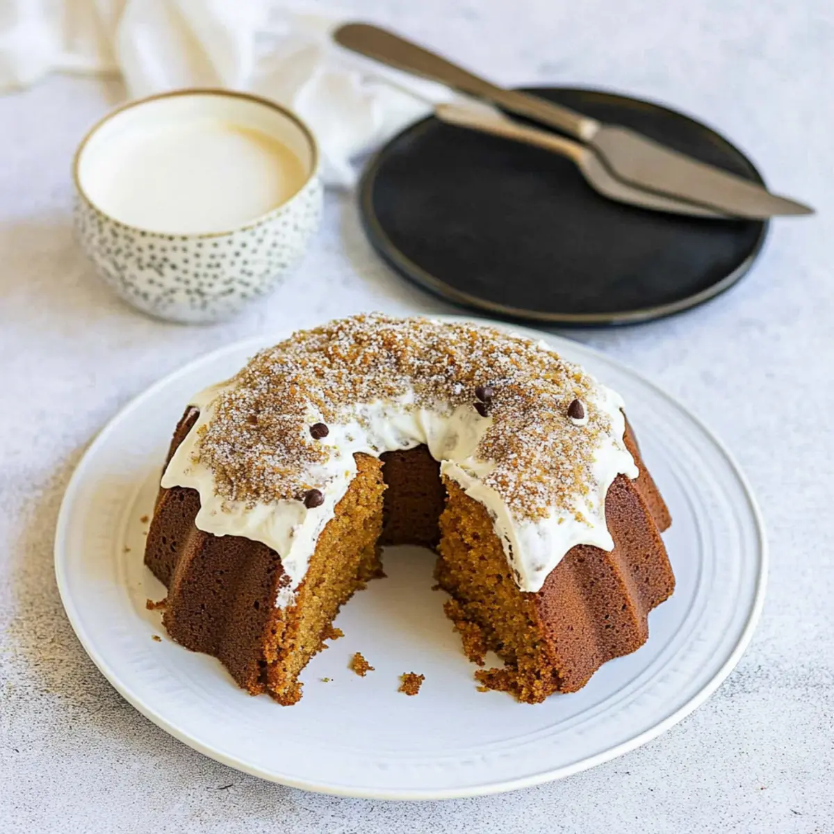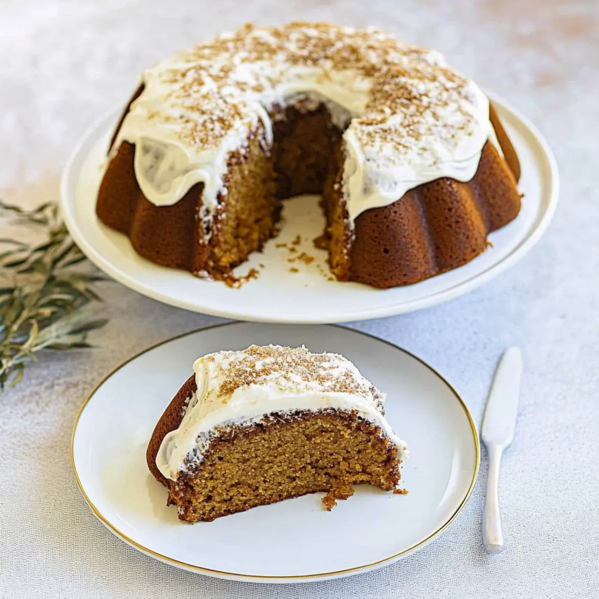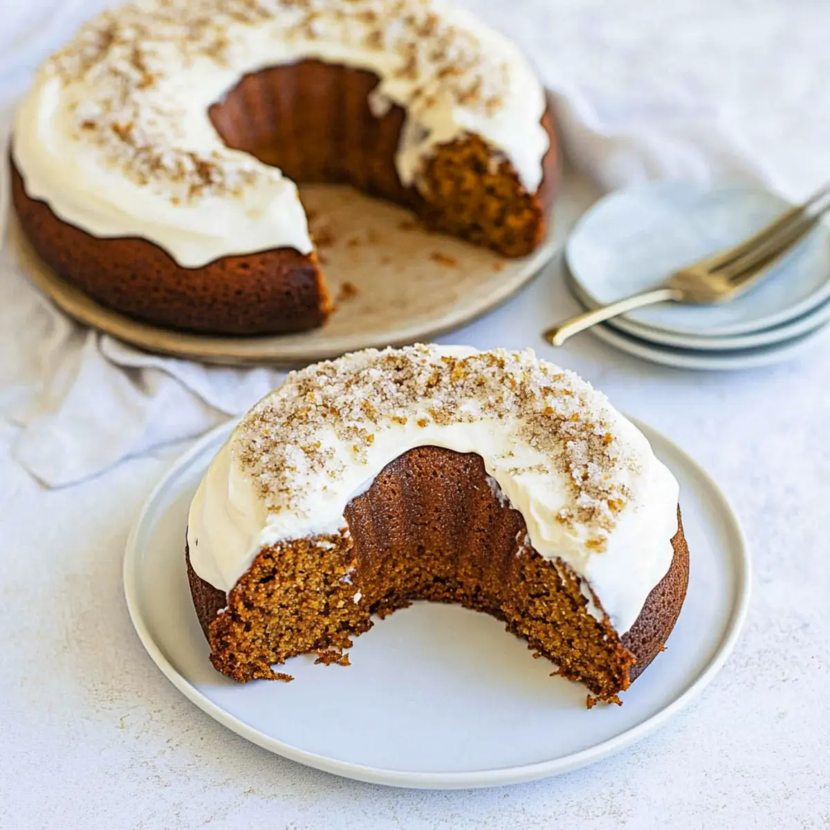 Imagine cutting into a cake that is fluffy, tender, and oh-so-moist, perfectly spiced with cinnamon, nutmeg, and ginger. Topped with a luscious cream cheese frosting that adds a delightful creaminess, this cake is a step above the usual holiday desserts. It's perfect for Thanksgiving, family reunions, or just a cozy evening at home with a warm cup of cider. Whether you're a seasoned baker or someone looking for an easy yet impressive dish, this Bundt cake is sure to please a crowd and keep that spirit of autumn alive in every bite!